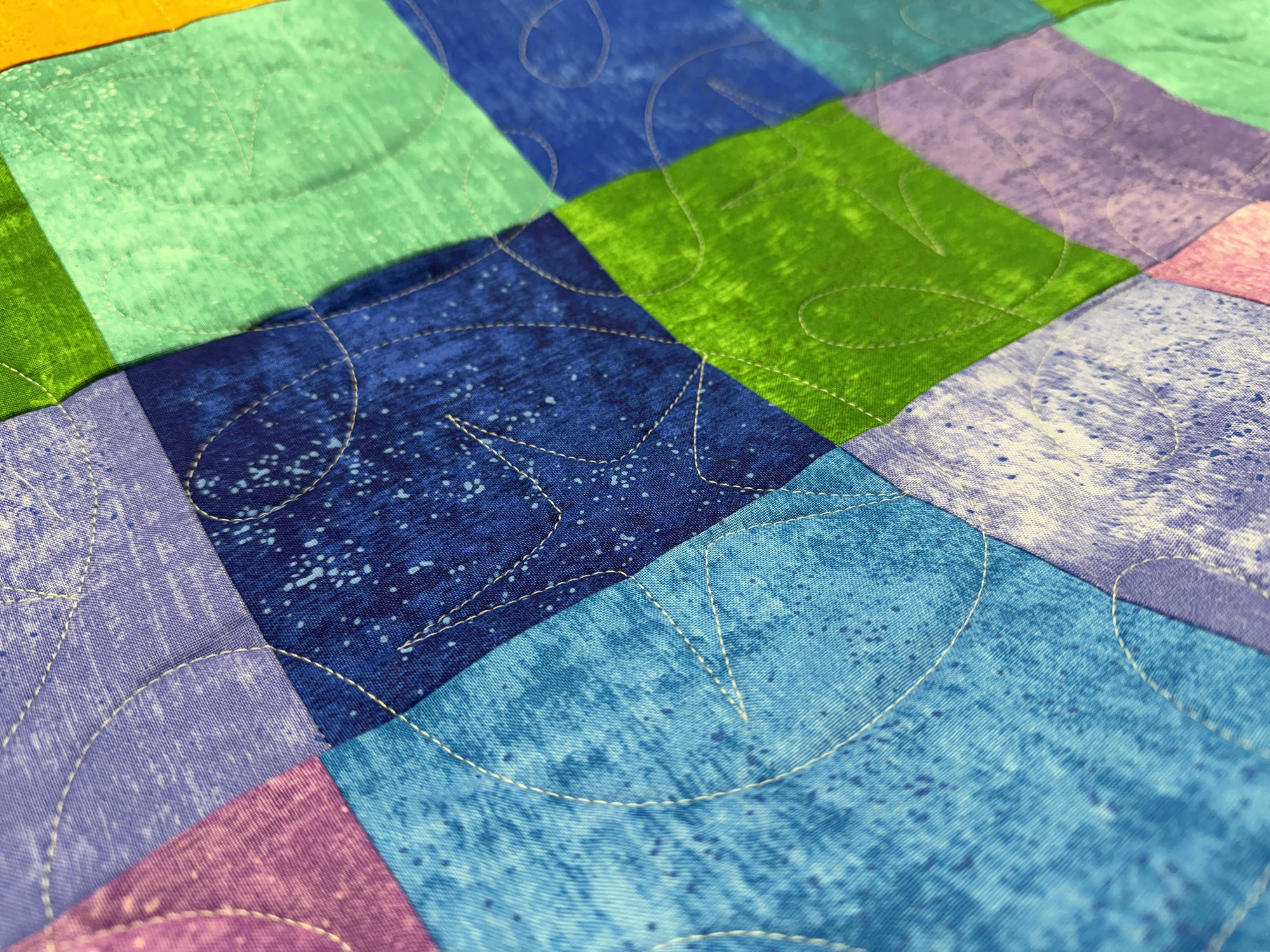 The "Ginger Star" quilt pattern features a whimsical and flowing design, blending elements of star shapes with playful, looping lines. The stars evoke a sense of warmth and charm, reminiscent of cozy autumn evenings. The overall mood is cheerful and inviting, suggesting a fusion of warmth and creativity, much like the comforting essence of ginger spice. This pattern is perfect for quilters seeking to create a vibrant, dynamic piece that brings a touch of sparkle and movement to their projects.